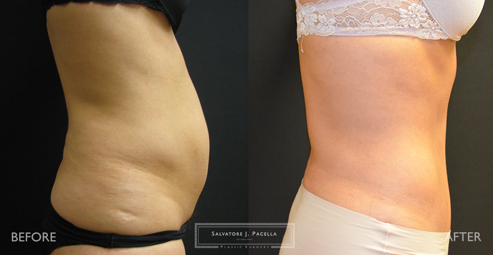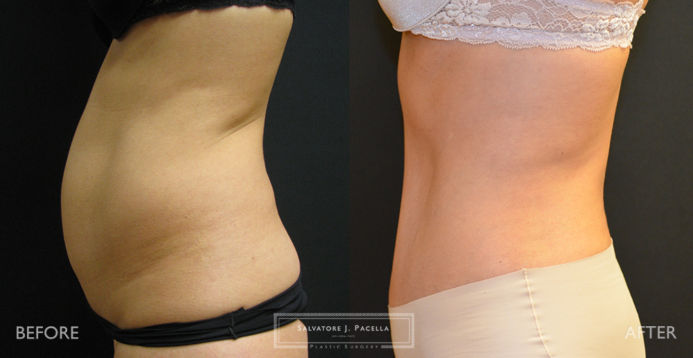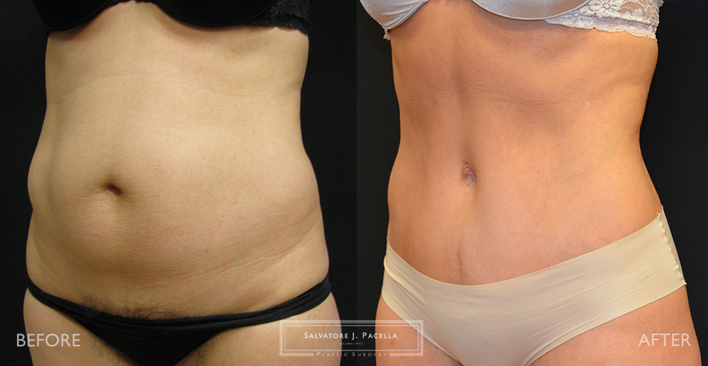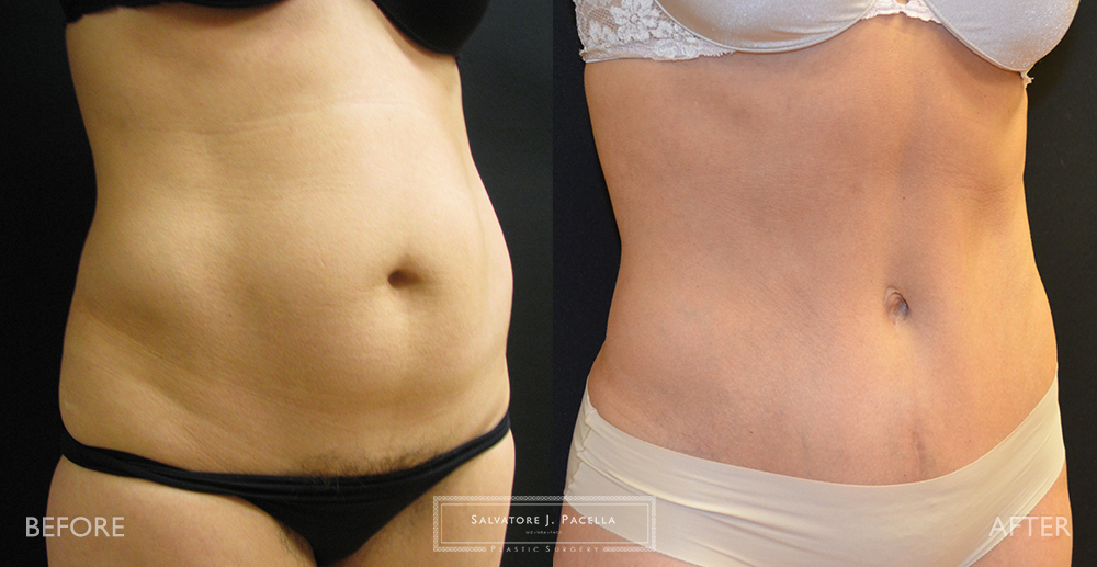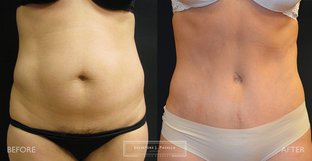 This 46 year-old female was unhappy with the appearance of her abdomen after several pregnancies. Although she was in excellent physical shape, no amount of abdominal core exercises could tighten her abdomen. An abdominoplasty, which removes excess skin and tightens the abdominal muscles, was performed. After surgery, she no longer felt bloated and she felt her back muscles were less strained. Postoperative result at 1 year reveals her new “six-pack” musculature in her tummy.