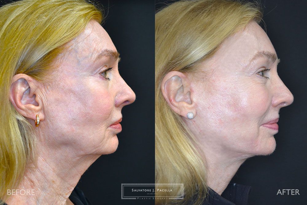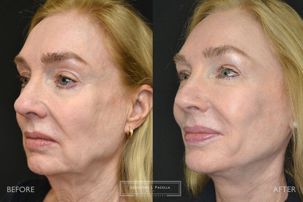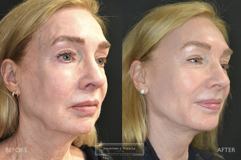To address these issues with natural-looking results, Dr. Pacella performed a deep plane facelift, one of the most advanced and powerful techniques in modern facial rejuvenation.